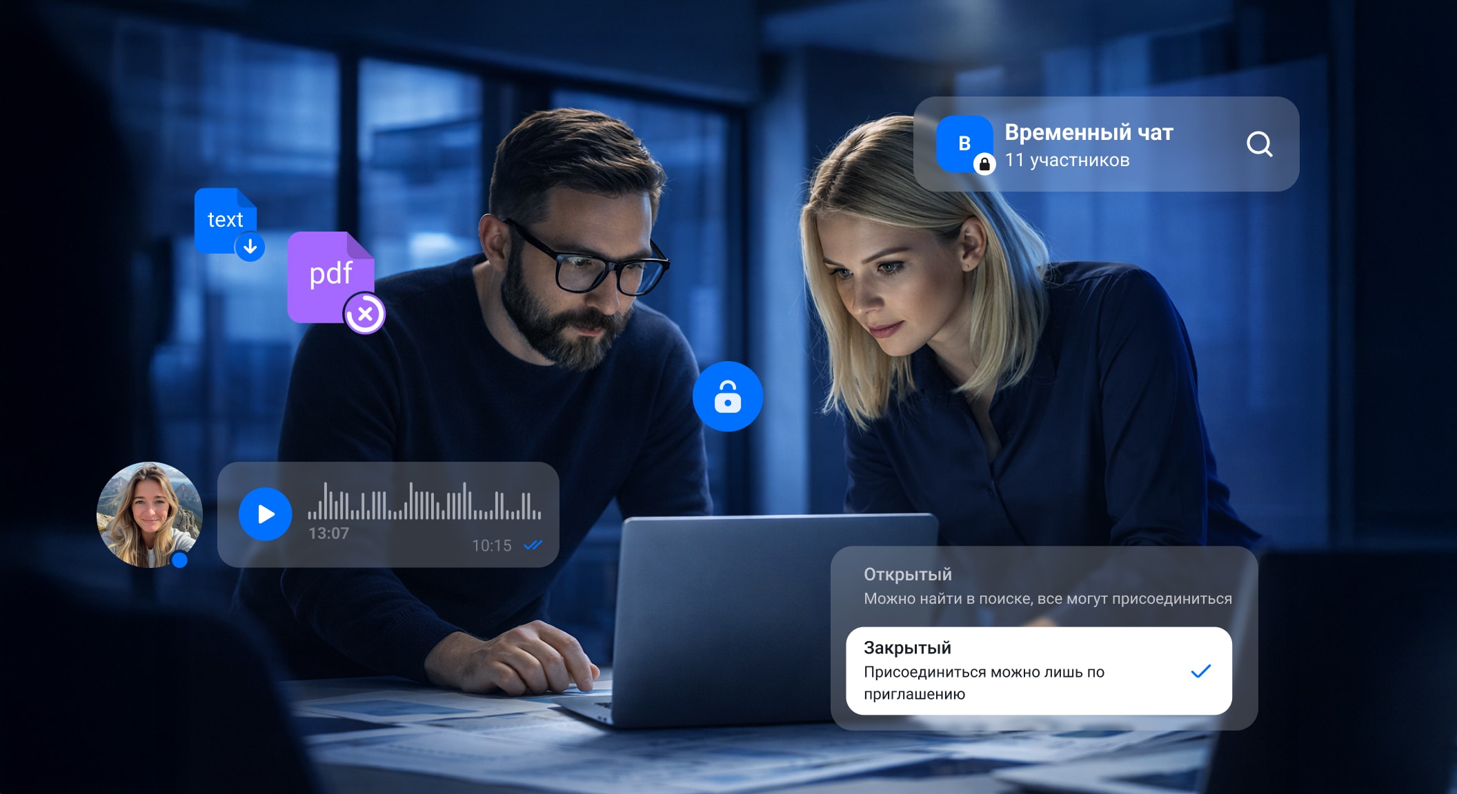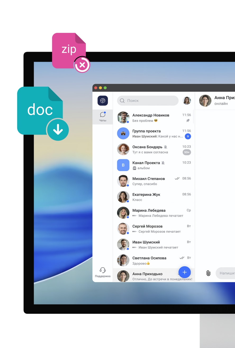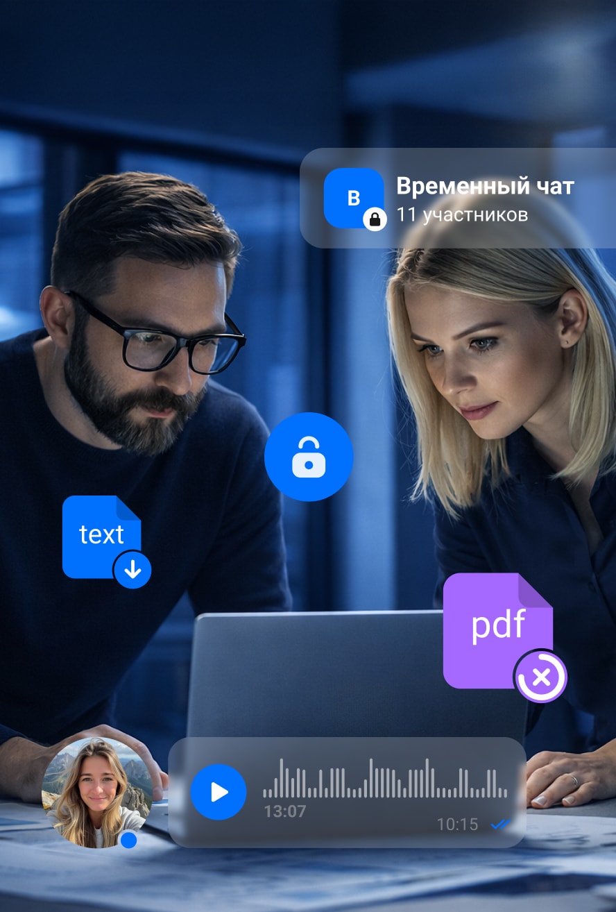 Объединяйте сотрудников в одном приложении, где все коммуникации и документы находятся под надёжной защитой.