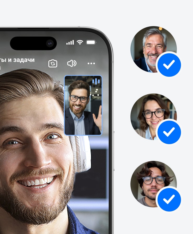 Проводите видеоконференции до 300 человек для обсуждения важных проектов, внутренних совещаний и стратегического планирования.