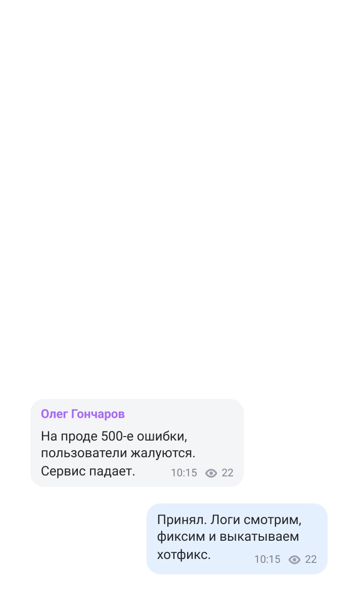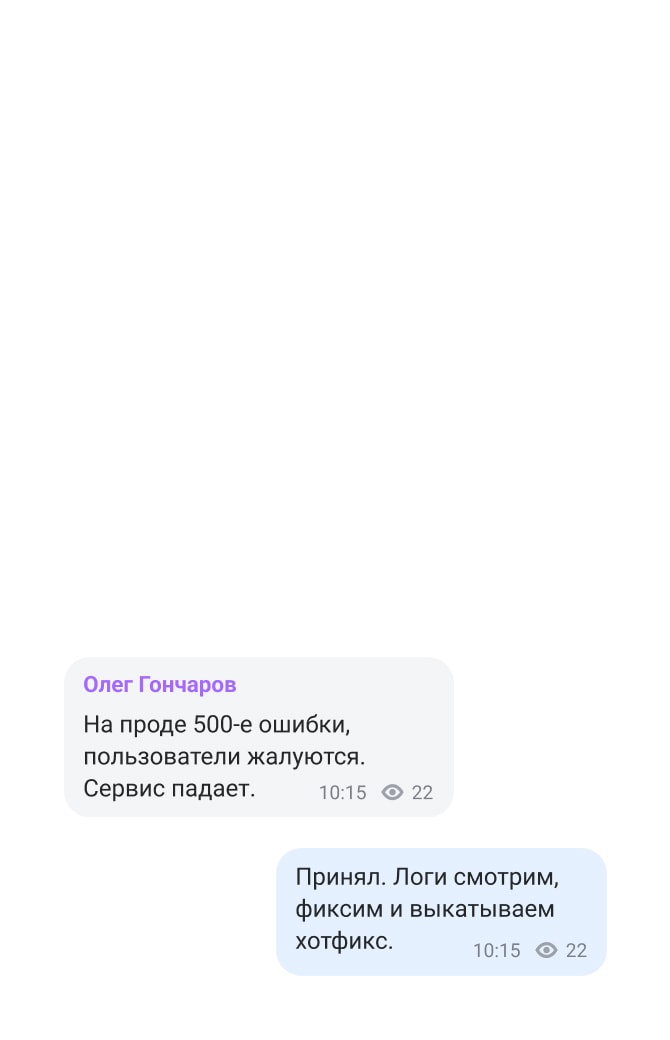 DevOps-инженеры и разработчики оперативно координируют действия в экстренном чате, чтобы исправить ошибку на продакшене.